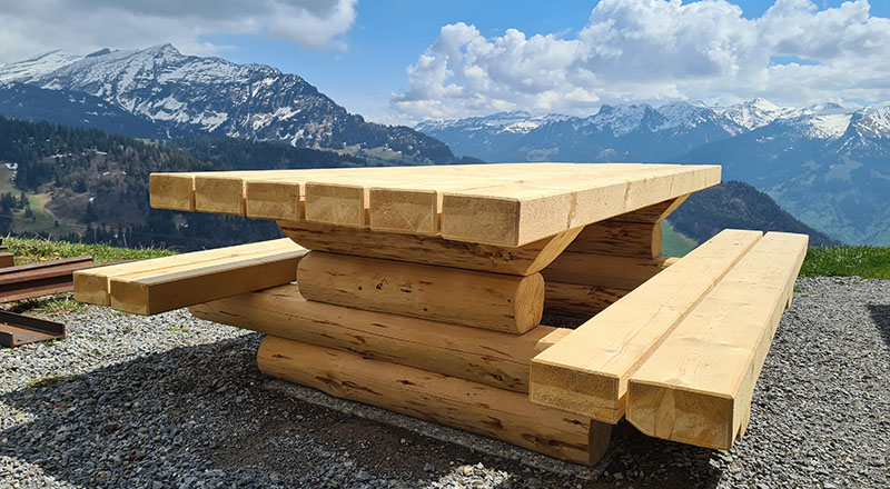 Gewachsen, gepflegt, geerntet und verarbeitet im Bergdorf über dem Walensee, wird unsere Tischbankgarnitur «Mattstock» mit Liebe zum Handwerk von unserem Forstpersonal hergestellt.